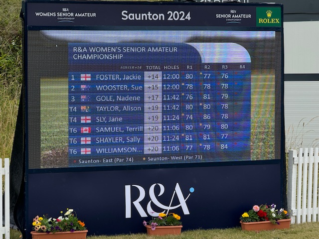 The R&A Women's British senior amateur championships was held at Saunton Sands over 4 days. Jane Sly, who qualified 57th in the women's competition was tied 1st after day 1 in testing conditions. Day 2 was a challenging day with 25mph winds and brutal rough on the East course, Jane slipped to 12th on the leader board but made the first cut of 20 quite comfortably. Day 3 saw Jane improve her position to 4th and made the Final Cut to 20. After the 4th round, Jane finished 10th in a highly competitive field from across the world most of whom were international players with plus handicaps.
